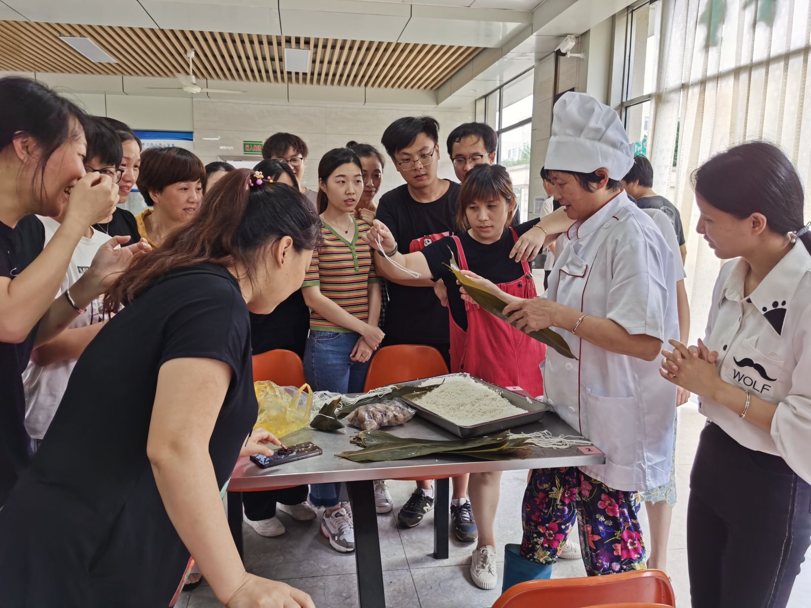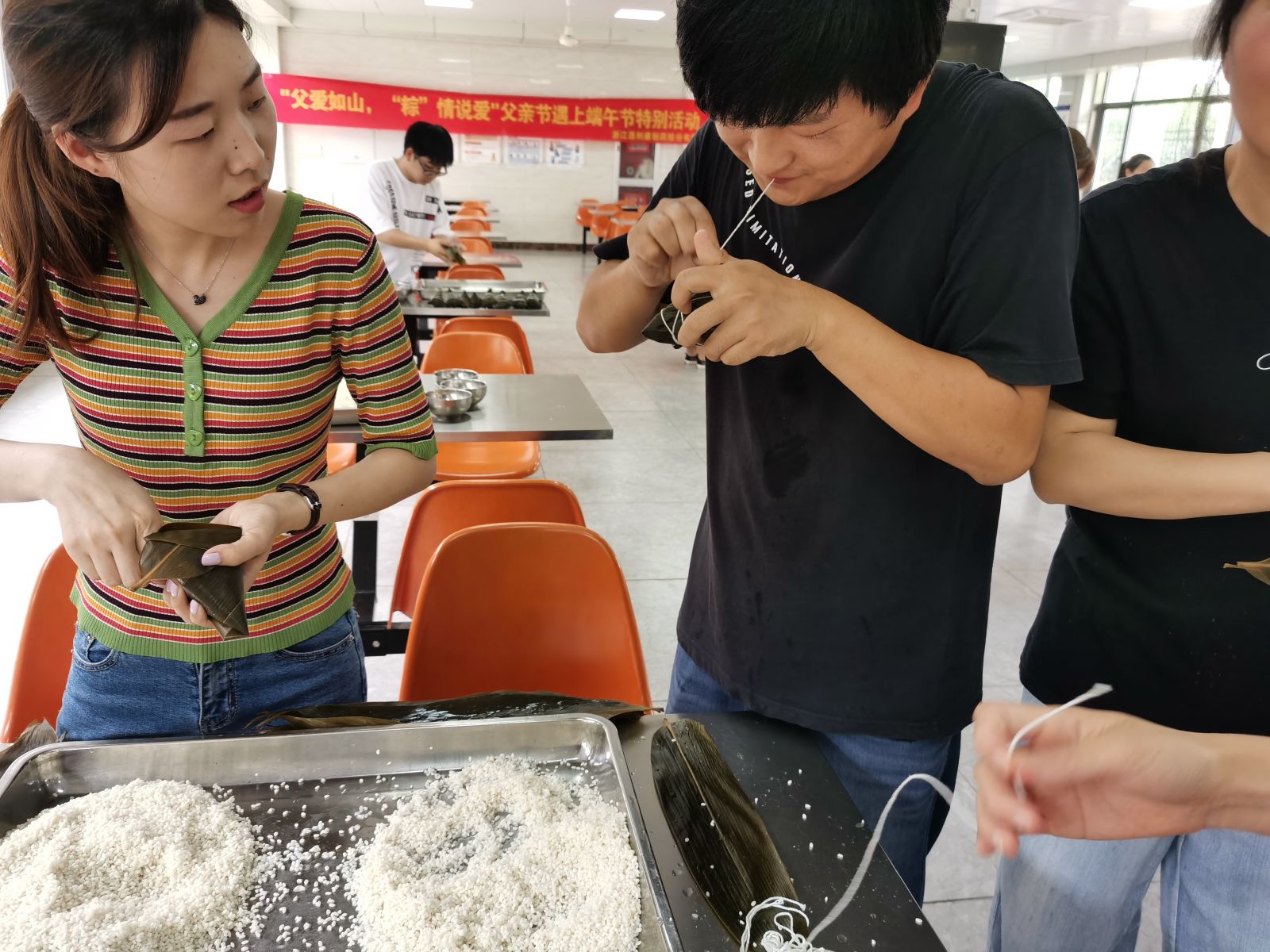 本次活動規(guī)則是:親手給父親包8個粽子,包好的粽子可以帶回家送給父親,以表達(dá)對父親的感恩之情。活動分男子組和女子組進(jìn)行比賽,由食堂阿姨對最終包好的粽子進(jìn)行評判,前8名可獲得節(jié)日禮品一份。