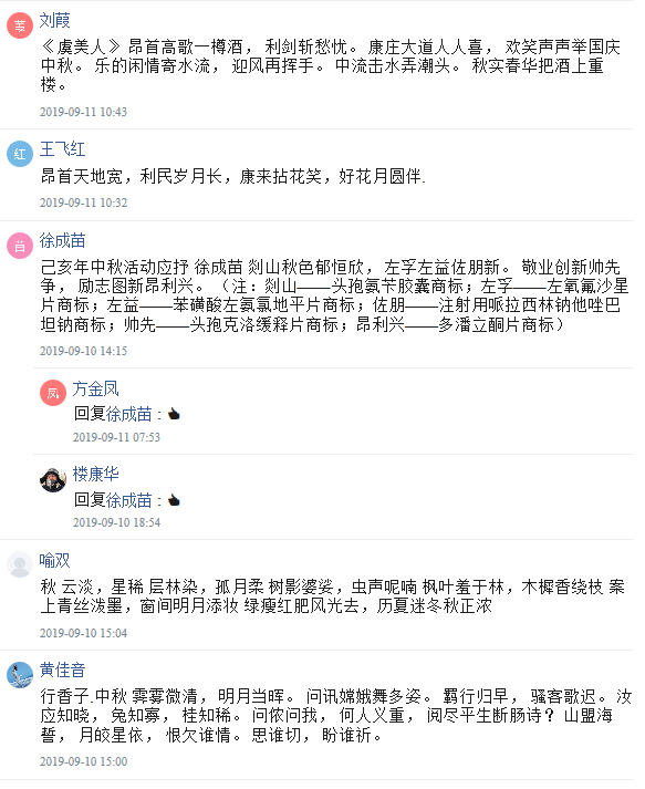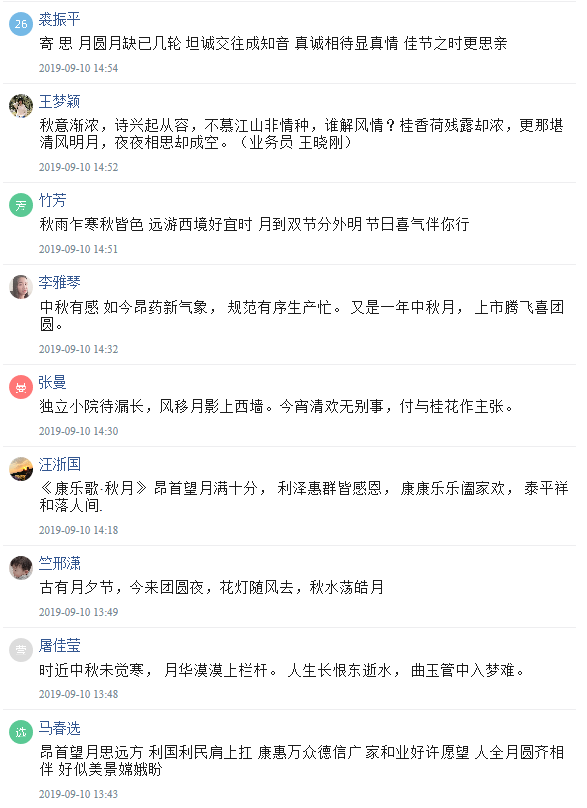 又到了“每逢佳節(jié)倍思親”的日子。說到中秋,家人、美食團圓桌上缺一不可;說到中秋,耳濡目染的就是蘇軾的《水調(diào)歌頭》:“但愿人長久,千里共嬋娟”。古人最喜歡的是對月抒情,一首首唯美的詩詞流頌千年。昂利康在中秋來臨之際舉辦了關(guān)于“月圓,人團圓”的詩詞活動并已圓滿結(jié)束。在此中秋佳節(jié),昂利康祝您中秋快樂,闔家團圓!